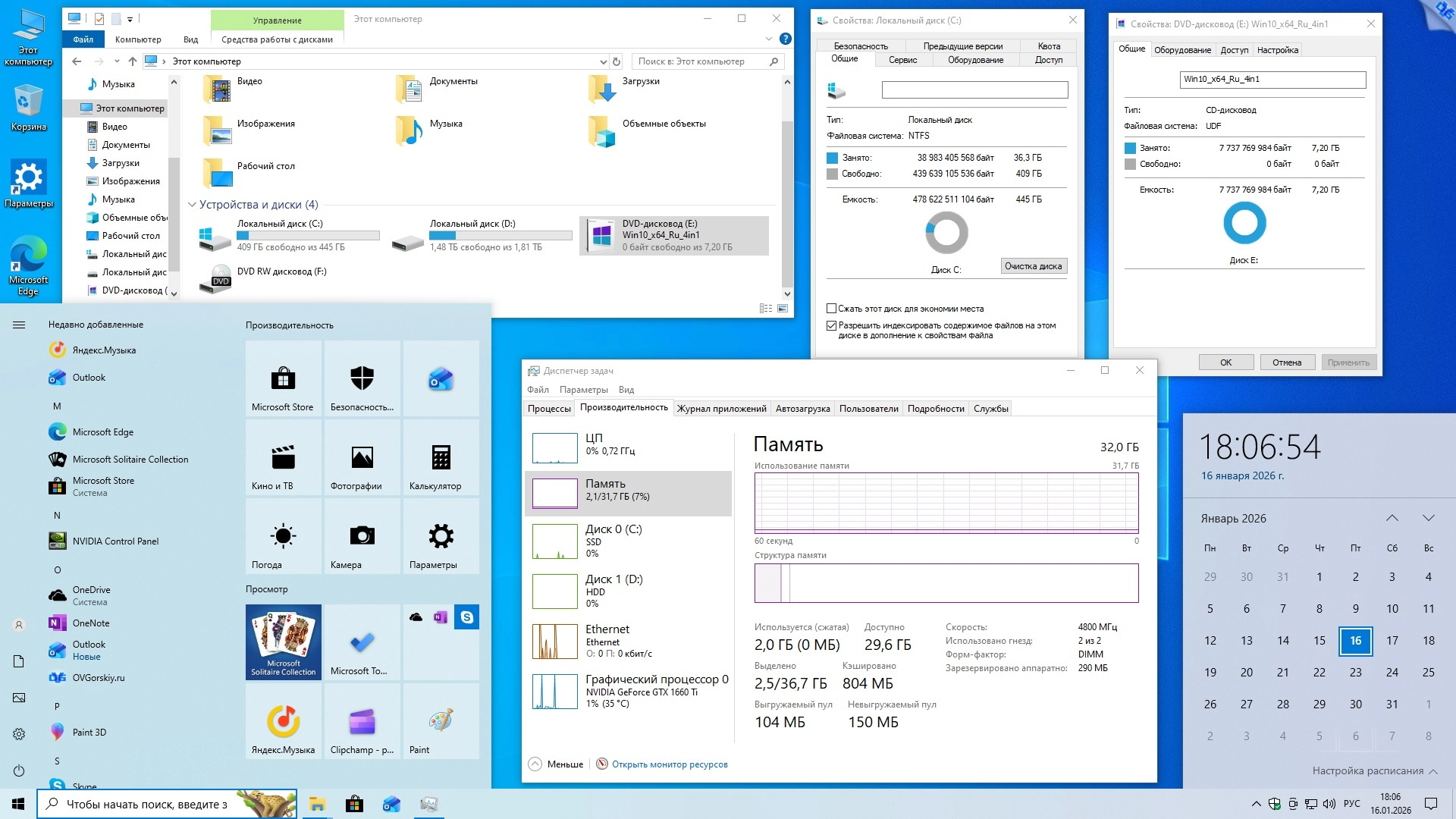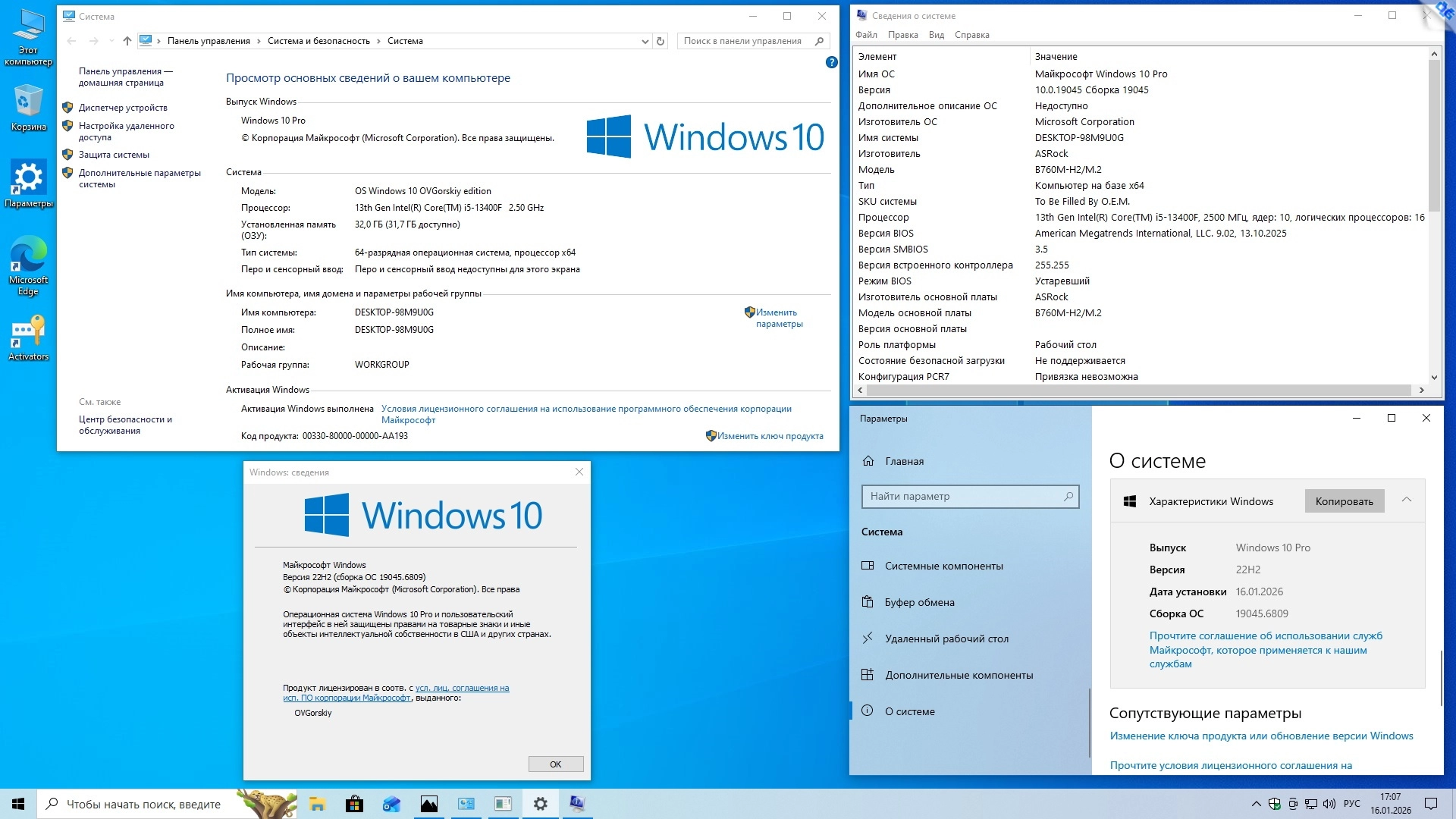 Торрент Windows 10 x64 22H2 4in1 by OVGorskiy 01.2026 подробнее: