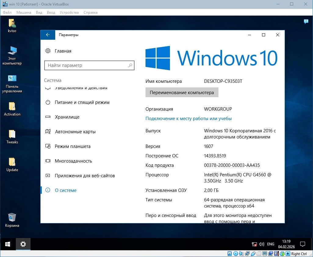 Торрент Windows 10 LTSB Build 14393.8519 Elgujakviso Edition (v.04.02.26) подробнее:
