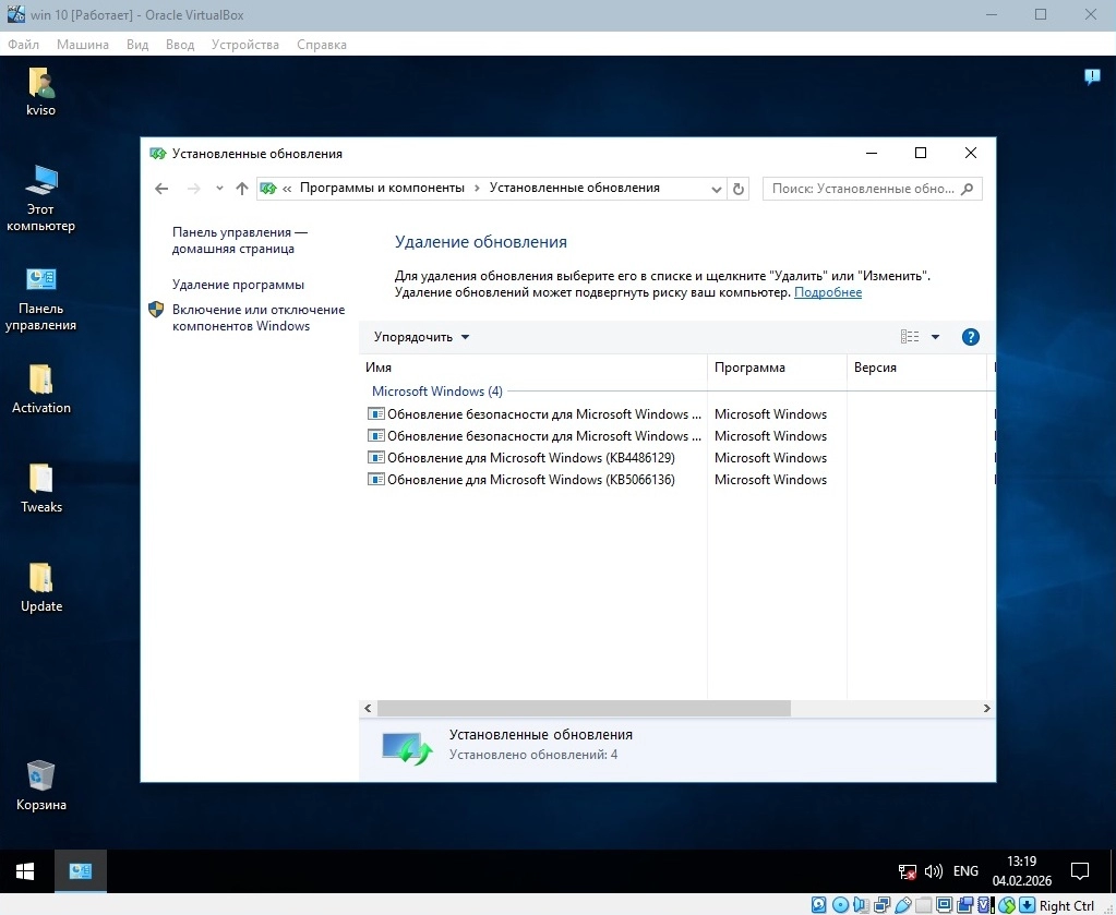 • Обновления по 10.2025г. Беспроблемные, пока они надёжные. 01.2026 ломает целостность системы, конечно восстанавливает сама SFC, но ознакомившись убедился, что никаких важных изменений для себя не нашел, чтобы стоило их использовать. Рекомендую отключить обновления! Вам решать как хотите.