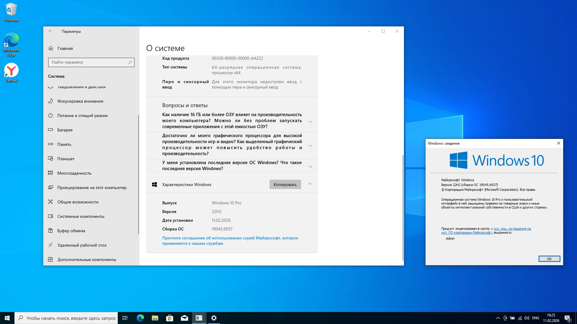 Торрент Windows 10 Pro 22H2 Build 19045.6937 Full Февраль 2026