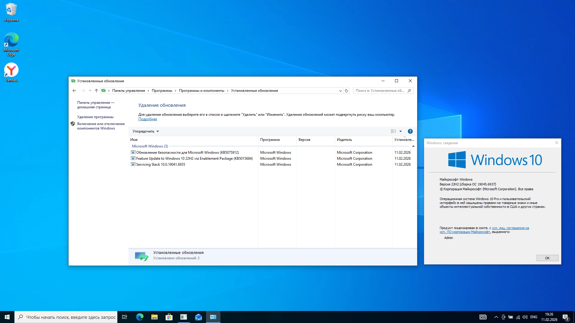 Windows 10 Pro 22H2 Build 19045.6937 Full Февраль 2026