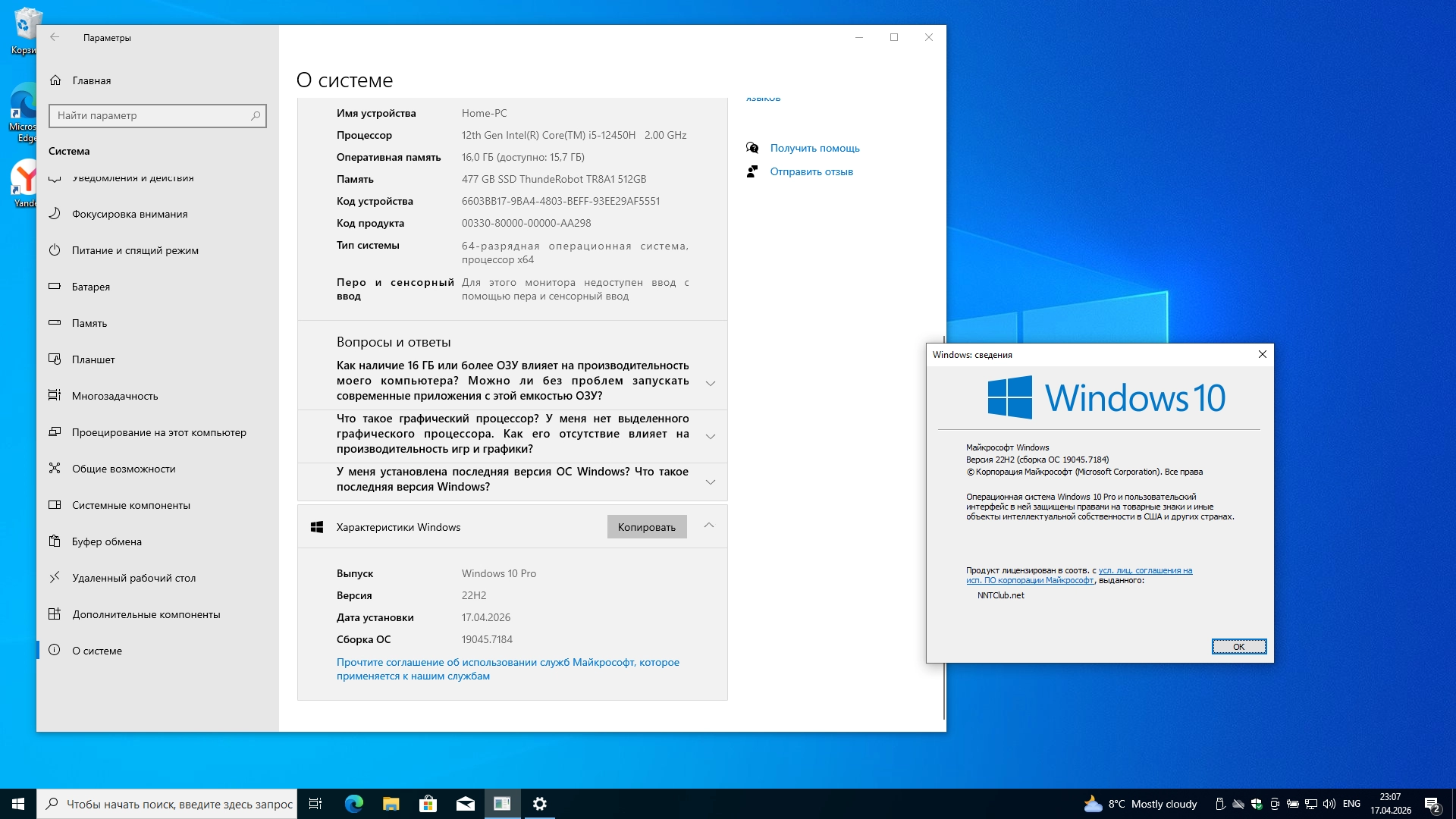 Торрент Windows 10 Pro 22H2 Build 19045.7184 Full Апрель 2026 подробнее: