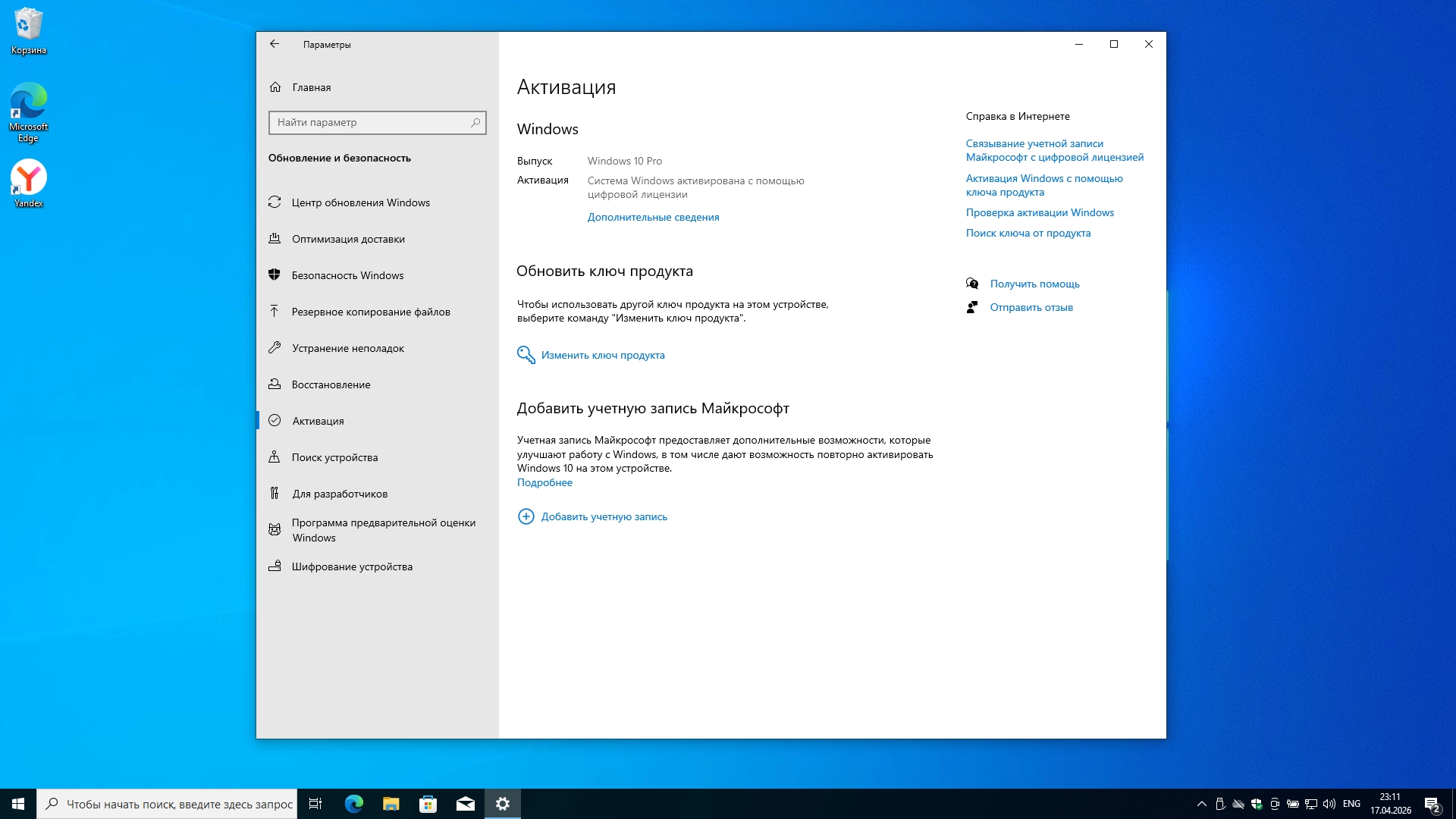 • система активируется автоматически (HWID - цифровая лицензия) при подключении к интернету.