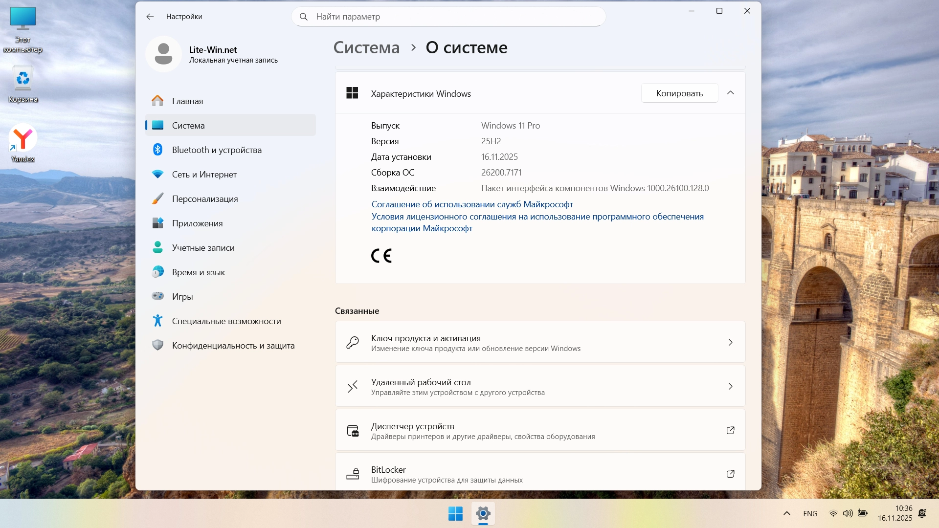 Торрент Windows 11 Pro 25H2 Build 26200.7171 Lite