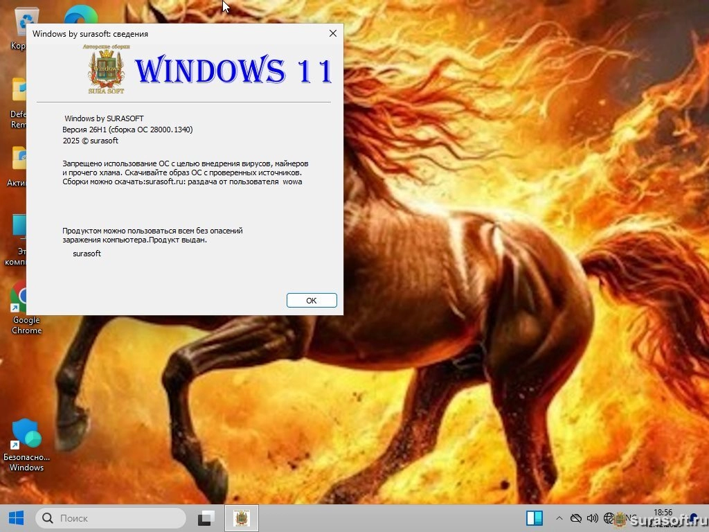 Торрент Windows 11 26H1 Build 28000.1340 by SURASOFT подробнее:
