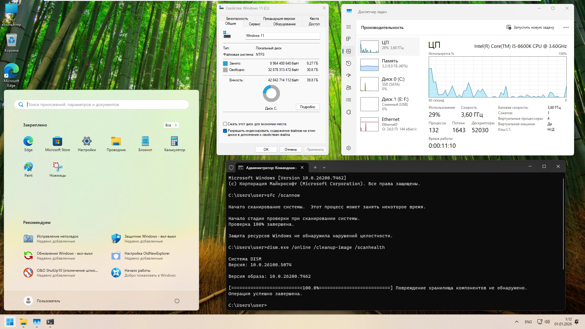 • проверка ОЗУ, TPM 2.0, UEFI и Secure Boot (искусственное ограничение установки на старые ПК) отключена