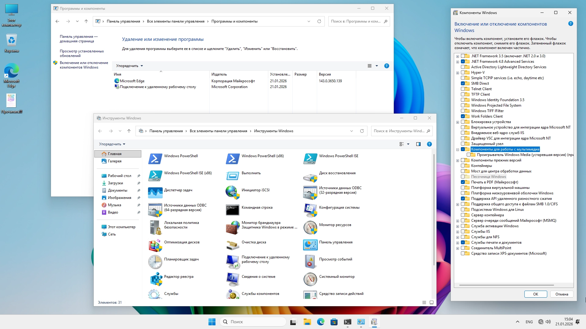 Настроенная авторская сборка Windows 11 Pro с обновлениями от 18 января 2026 года и автоматизированной установкой, запускаемой из BIOS (При загрузке с установочного носителя через BIOS/UEFI). Отключены ненужные службы, удалены мусорные приложения.