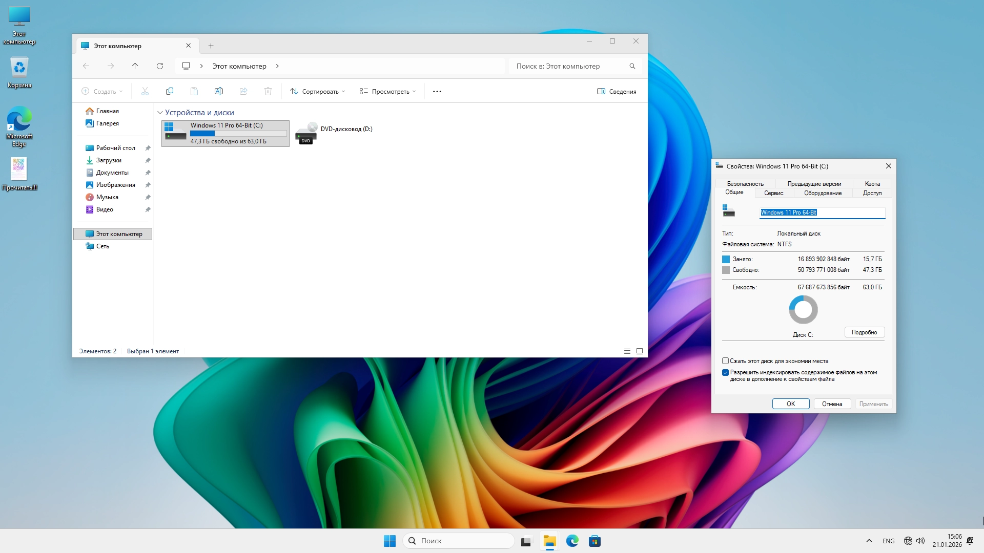 • Изменение имени диска "C" на "Windows 11 Pro 64-Bit"