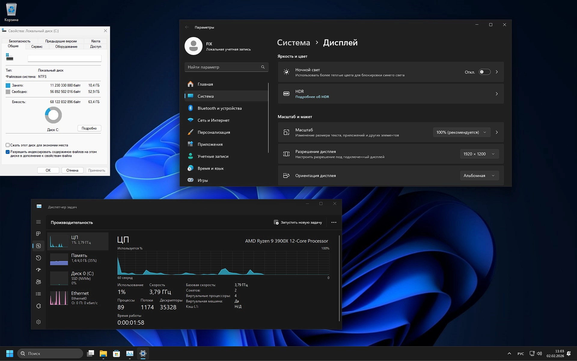 Если у вас старенький ноутбук или не самый новый компьютер, а хочется стабильно и комфортно работать с Windows 11 23H2 без хлама и телеметрии, сборка должна понравится. Defender был удален, SmartScreen и весь его фон был отключен полностью. Магазин оставили рабочим, он много кому интересен, хотя и тащит собой лишние процессы, он работает, с этим проблем нет. Обновления ставится будут, стоят на паузе по умолчанию.