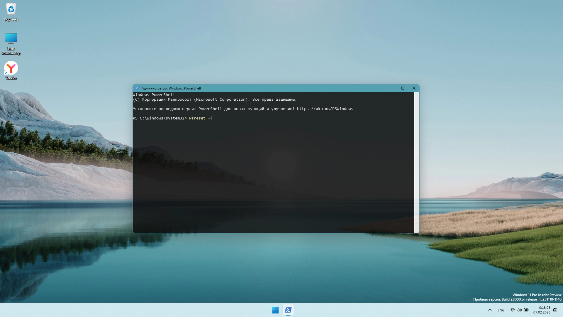 При включенном интернете в PowerShell от имени администратора вводим команду