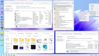 для быстрого доступа к настройкам компьютера, в меню "файл" добавлено "открыть файл блокнотом", "переместить в...", "скопировать в...", в меню "компьютер" добавлено "Диспетчер устройств", включено отображение скрытых файлов, папок и расширений файлов, в браузеры добавлена домашняя страница автора сборки, включена прозрачность нижней панели (зависит от включённой темы), добавлен небольшой набор фоновых картинок для рабочего стола, добавлено несколько официальных тем оформления рабочего стола из магазина. Включена "Защита системы" (создание точек восстановления) уже на начальном этапе.