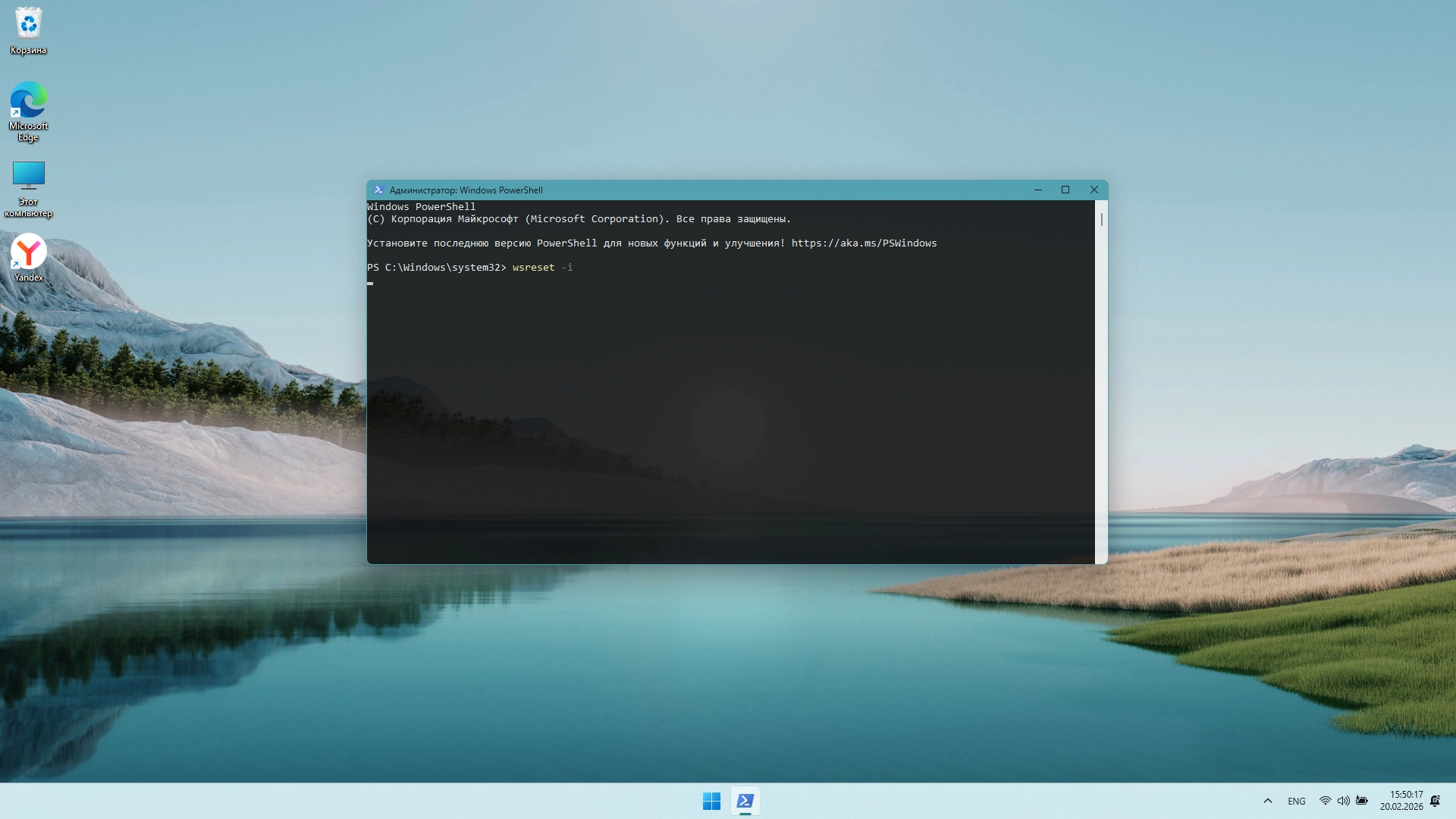 При включенном интернете в PowerShell от имени администратора вводим команду