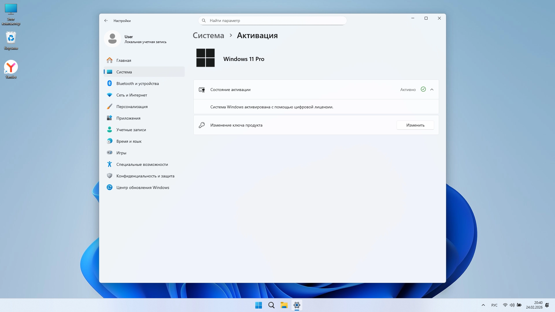 • система активируется автоматически (HWID - цифровая лицензия) при подключении к интернету.