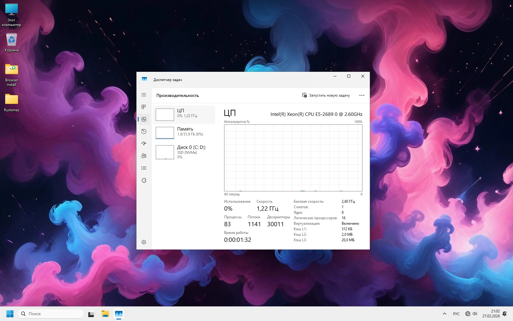 • Двухъядерные CPU или устаревшие поколения без современных инструкций не способны раскрыть потенциал 26H1. Система будет работать, но без запаса производительности.