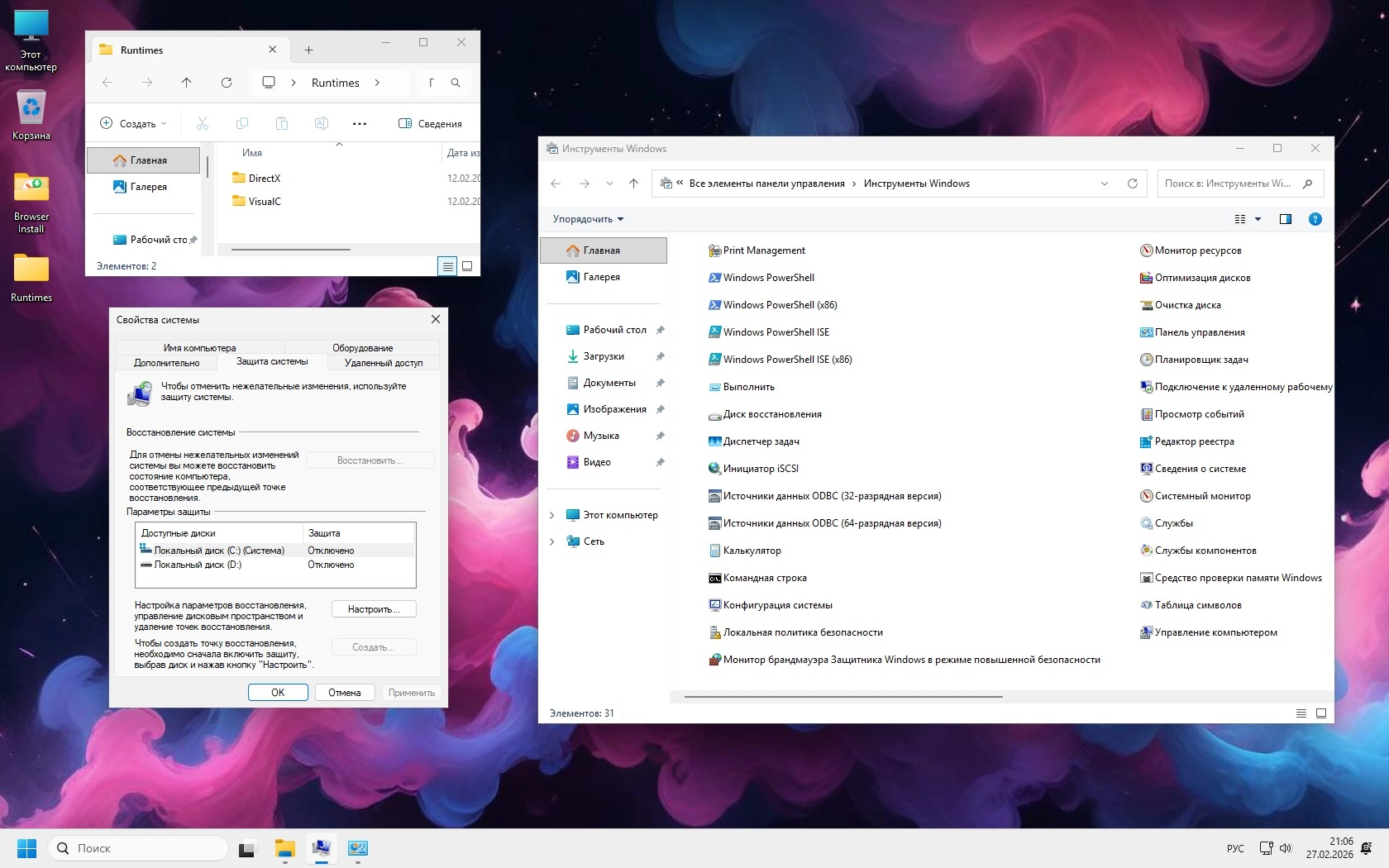 • Эта сборка подойдёт тем, у кого есть современный процессор, минимум 16–32 ГБ ОЗУ и SSD, а лучше NVMe. На таком железе 26H1 Pro показывает высокий FPS в играх, стабильную работу программ и быструю реакцию интерфейса. Defender, телеметрия и навязанные сервисы отключены, но при необходимости пользователь может включить нужные элементы обратно. Это честная производительная редакция Pro для тех, кто хочет максимум скорости без лишнего шума в системе.