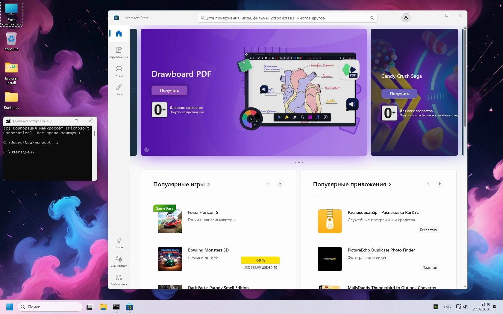 • Браузер Эдж. Сливает огромное количество телеметрии, наполнен рекламой. Конечно, работает он сравнительно быстро, но при этом ощутимо потребляет ресурсы и нуждается в тонкой настройке.