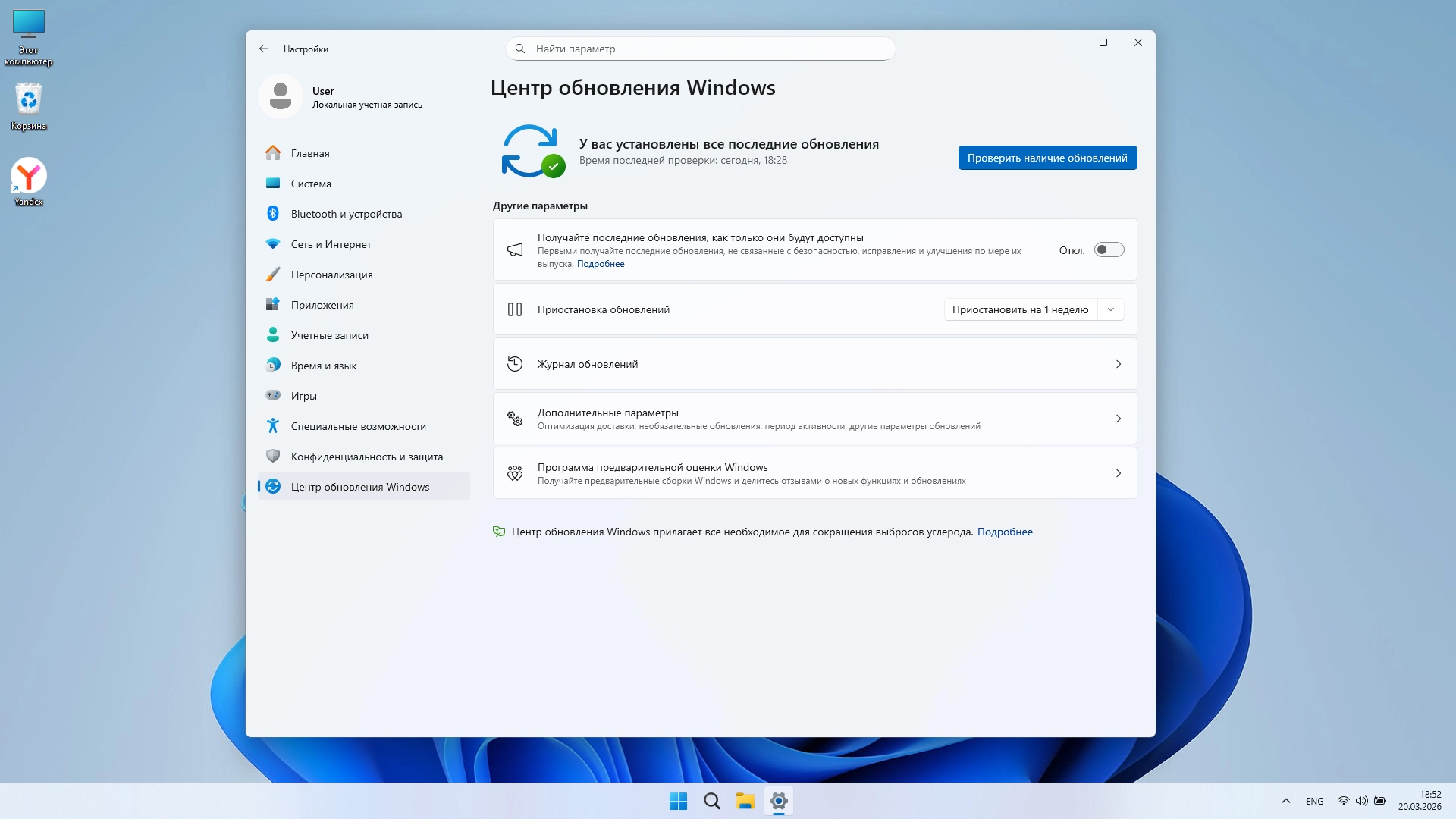 • Все актуальные обновления на момент создания сборки (март 2026)