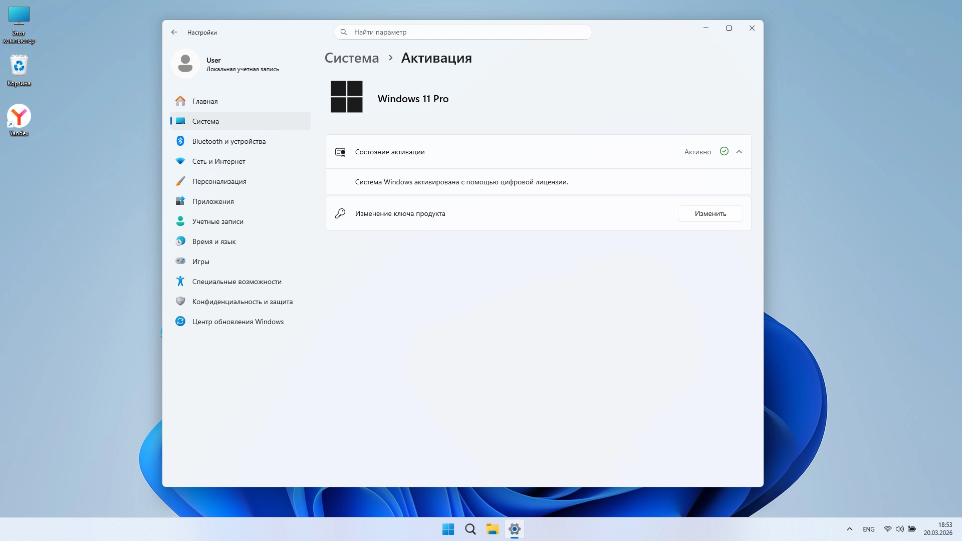 • система активируется автоматически (HWID - цифровая лицензия) при подключении к интернету.