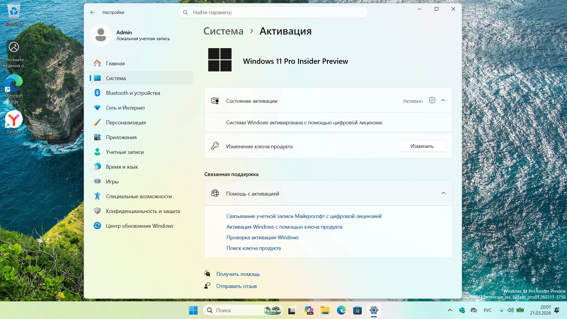 • система активируется автоматически (HWID - цифровая лицензия) при подключении к интернету.