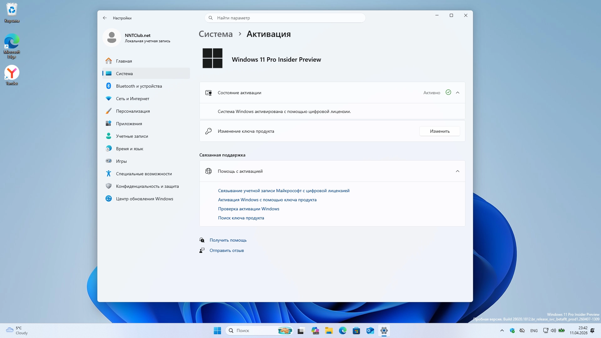 • система активируется автоматически (HWID - цифровая лицензия) при подключении к интернету.